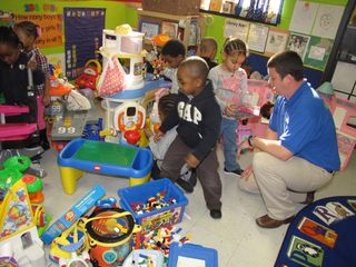 Children from the Harmony House Early Learning Center in Newark are seen here with Drew Trautman, franchise partner with 1-1800-Got-Junk?, who made the Dec. 15th toy delivery to the pre-school on behalf of Second Chance Toys. The center is owned and operated by the non-profit New Community Corporation.
